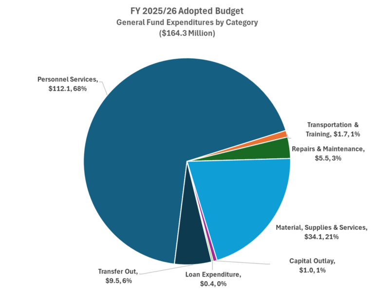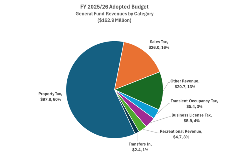 The City of Pleasanton’s budget is a plan for how the City will spend money. The City’s budget reflects the city’s operational needs, strategic goals and the values and priorities of the City Council and the community. The budget includes line items for both operational expenses (for example, librarian salaries) and capital expenses (for example, concrete to pave streets).