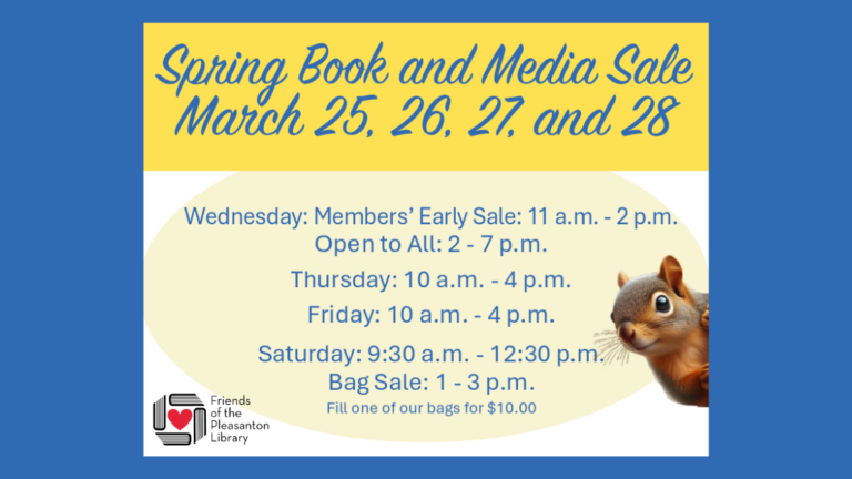 Stop by the Friends of the Pleasanton Library’s Spring Book and Media Sale starting Wednesday, March 25.